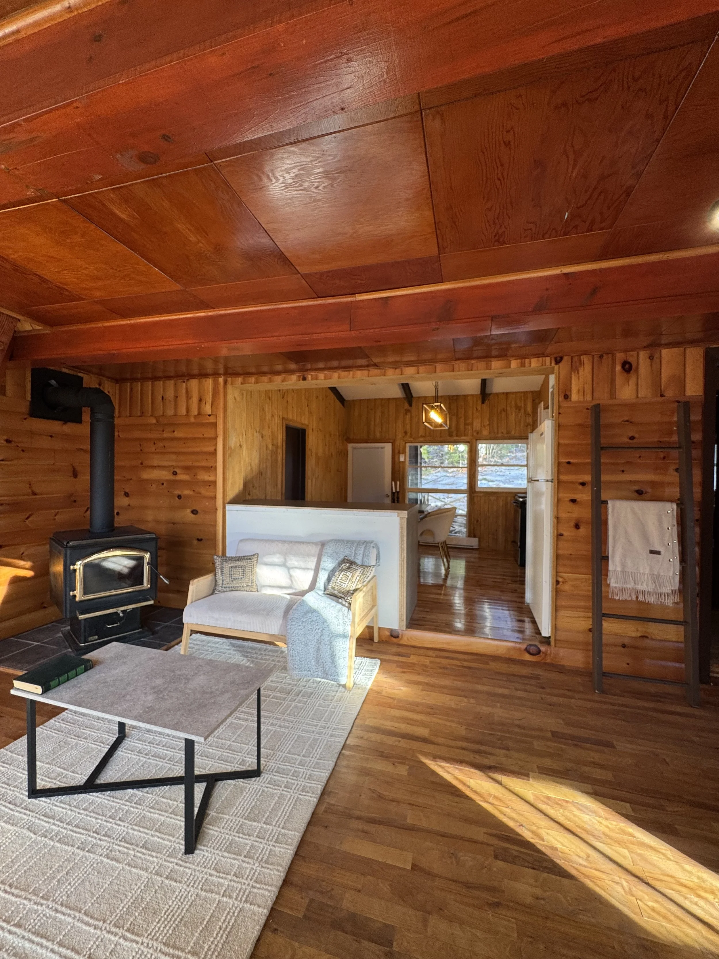 The Lac Paré project involved the complete transformation of a home with an originally small, outdated, and enclosed kitchen that limited both functionality and natural light. We removed the wall separating the kitchen from the living room to create an open-concept layout, improving circulation and enhancing the connection between the spaces. This redesign also allowed the expansive living room windows to become a focal point, maximizing natural light and creating a brighter, more inviting atmosphere.